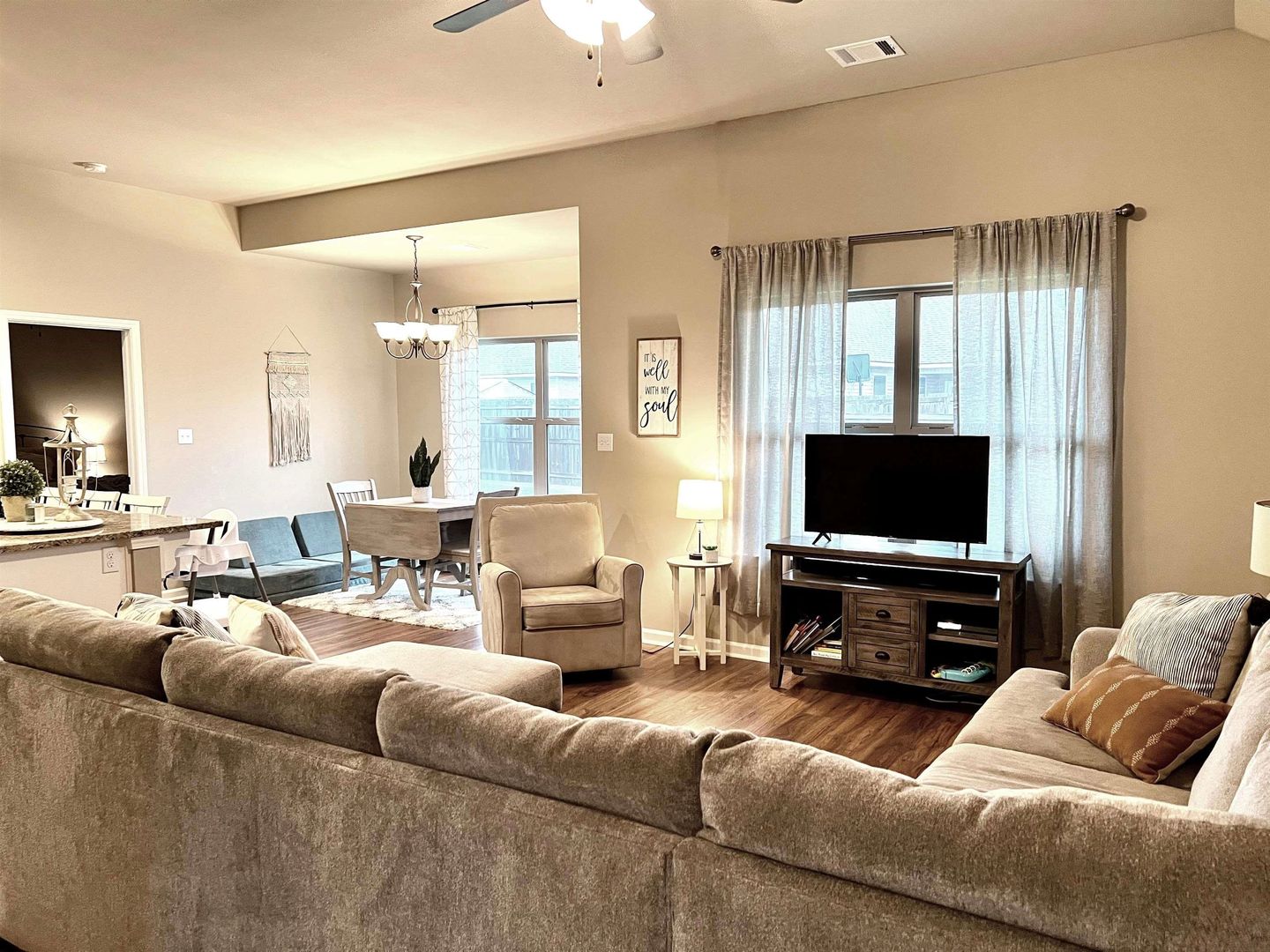 Welcome to this delightful 3-bedroom, 2-bathroom home located in the charming city of Denham Springs, LA. This home boasts an open floor plan that allows for seamless transitions between spaces, perfect for entertaining or simply enjoying a relaxed lifestyle. The kitchen is equipped with modern amenities such as a dishwasher, microwave, and a refrigerator, complemented by granite-style countertops that add a touch of elegance. The home also features a 2-car garage, providing ample space for parking and storage. The large backyard is a blank canvas, ready for your personal touch. Inside, you'll find wood laminate flooring throughout the main living areas, while the bedrooms are carpeted for added comfort. The home also includes washer/dryer connections for your convenience. Ceiling fans, white faux wood blinds, and a stove complete the package, making this home a perfect blend of comfort and style. Come and experience the charm of this lovely home in Denham Springs, LA.